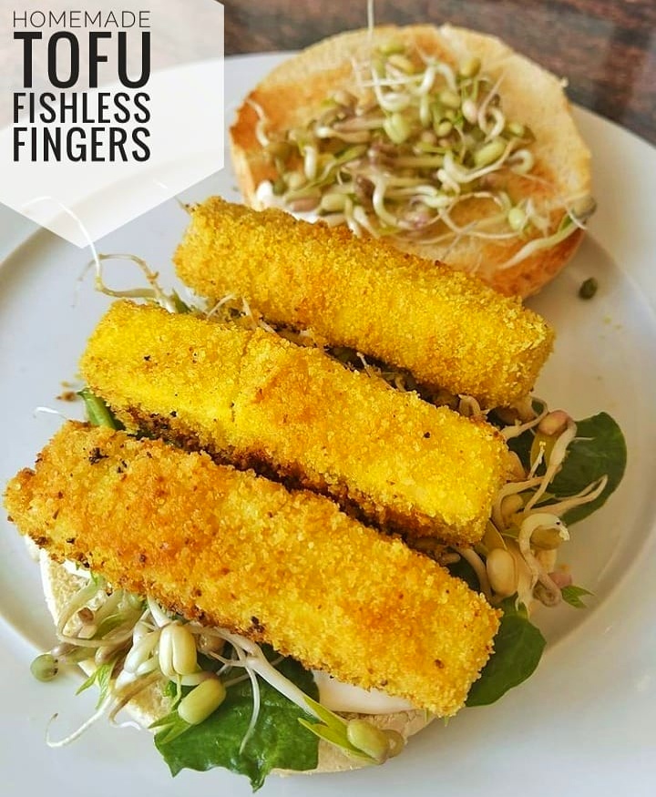 However, I recently discovered how to make really tasty tofu based alternatives. Fish(less) finger sarnies here I come. These can also be made gluten free, if you choose an appropriate breadcrumb.