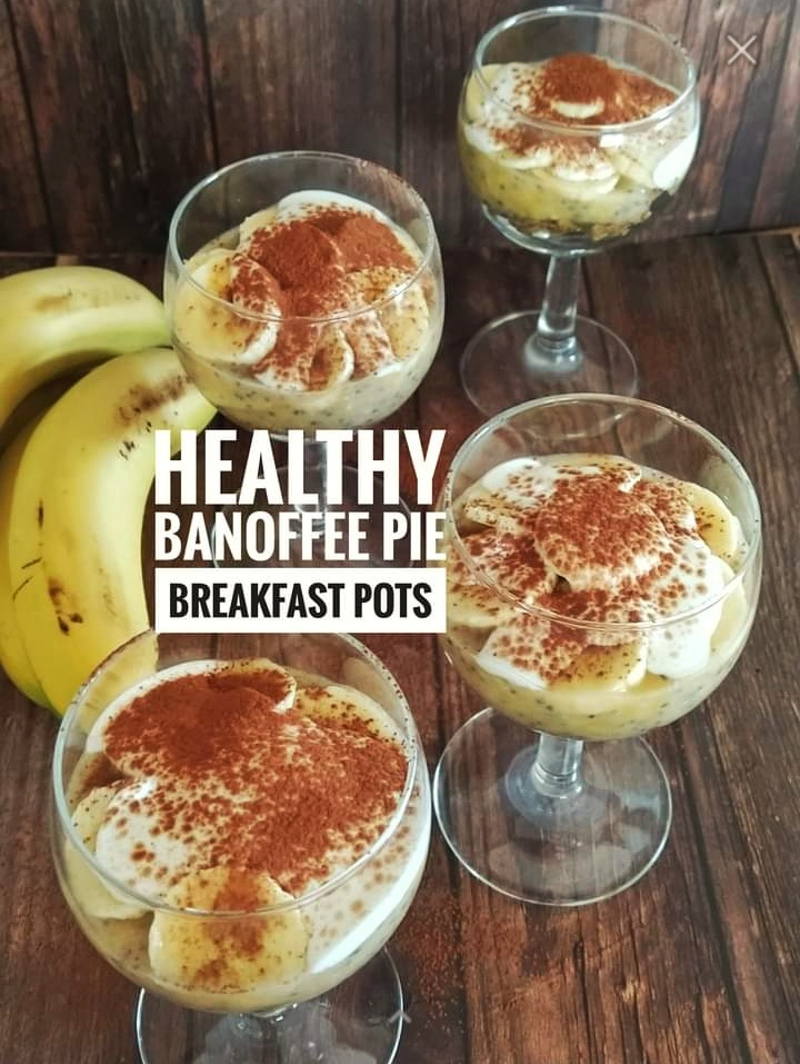 After making Black Forest Cake Breakfast pots recently, I’m prepping some Healthy Banoffee Pie pots.