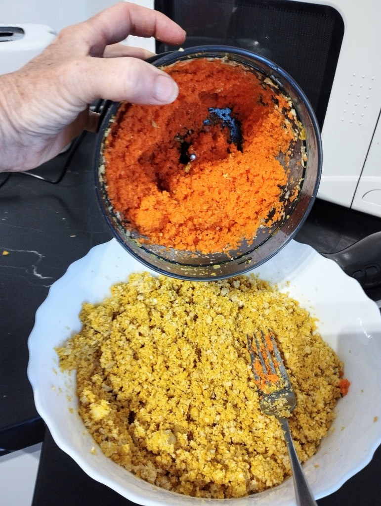 The blitzed carrots and onions, combined with pantry spices, to form the perfect base for these crispy, golden-brown wonders. I used my trusty hand-blender attachment to keep it simple & worked in batches.