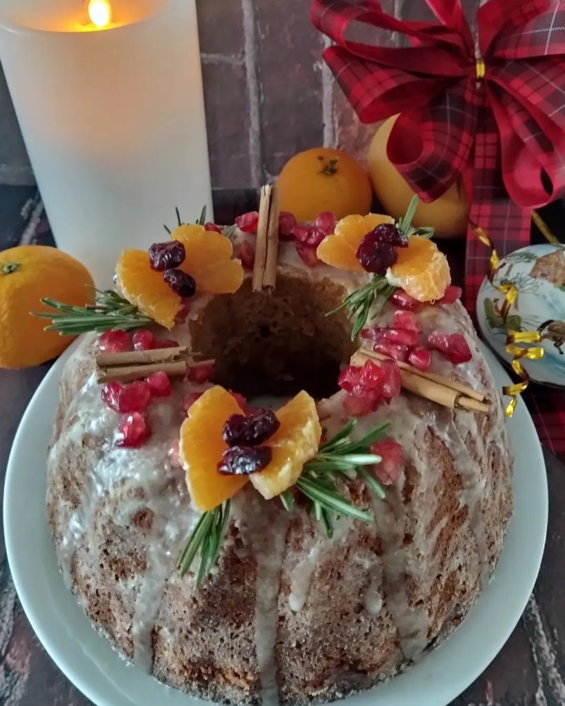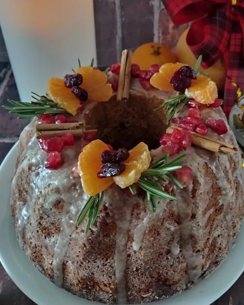 9) Once the cake is cool, turn out on a wire rack or plate. Spoon over the rest of the glaze & decorate.
