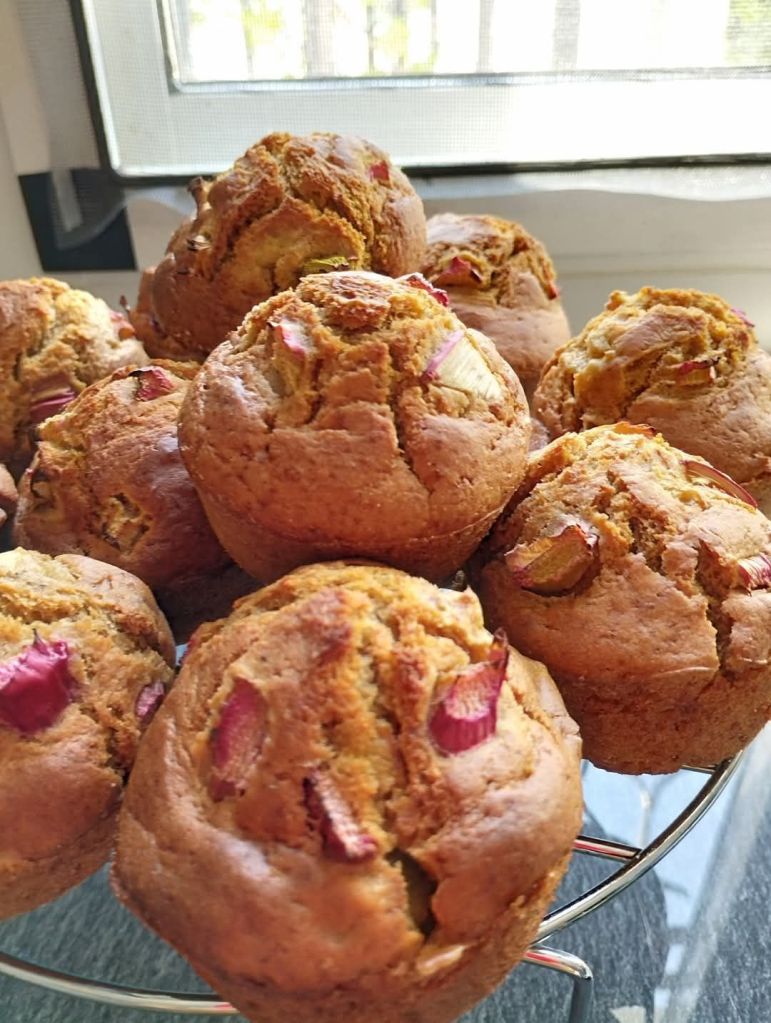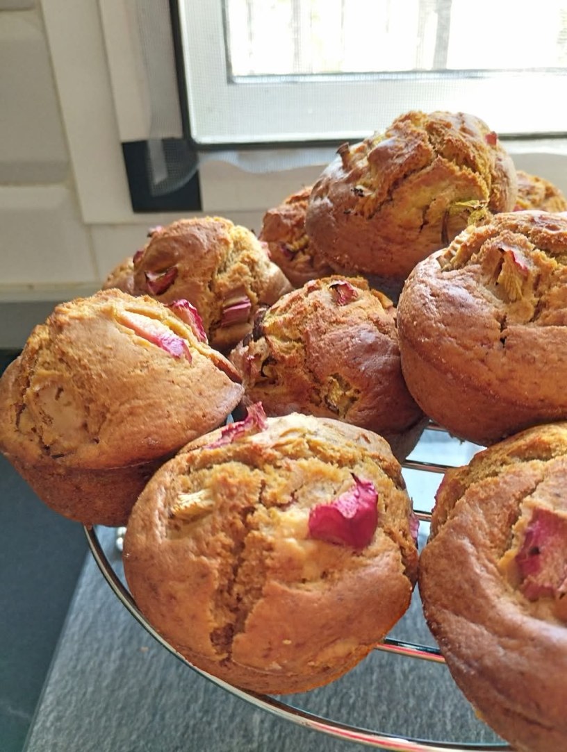 2 stems finely sliced rhubarb (about 1-1½ cups in total including some you can set aside for topping the muffins).