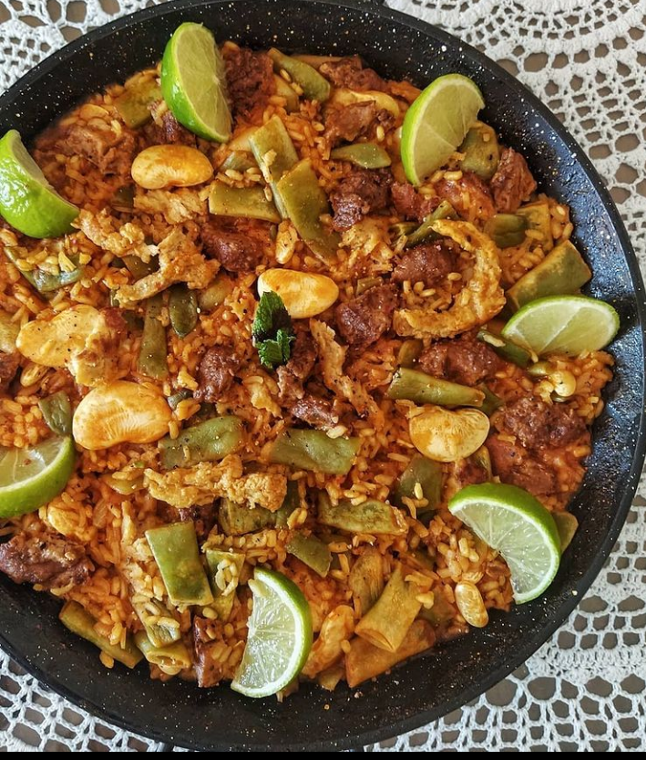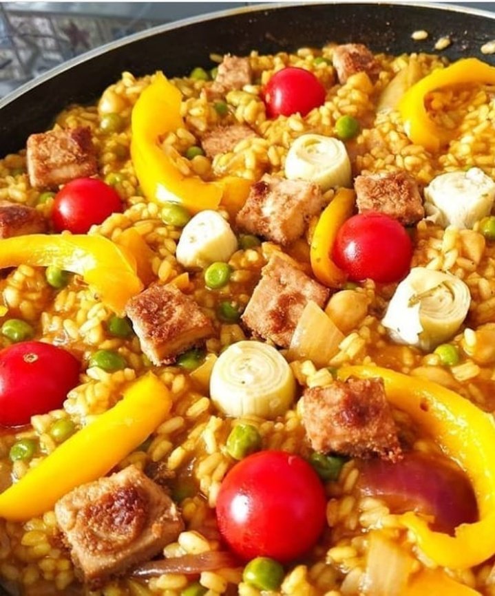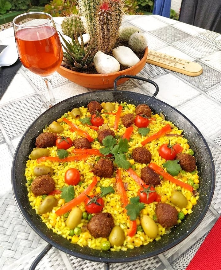 There is much debate about what is, & what isn’t Paella. To the Valencians, the recipe for Paella is sacred & only refers to the traditional dish from Valencia: chicken, rabbit & duck. (See my photo of my vegan version below:)